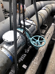 冷却水洗浄装置設置に付帯する、空調メンテ用の配管工事です。重量物の搬出入や、既存物等、建物の安全を配慮し施工しています。